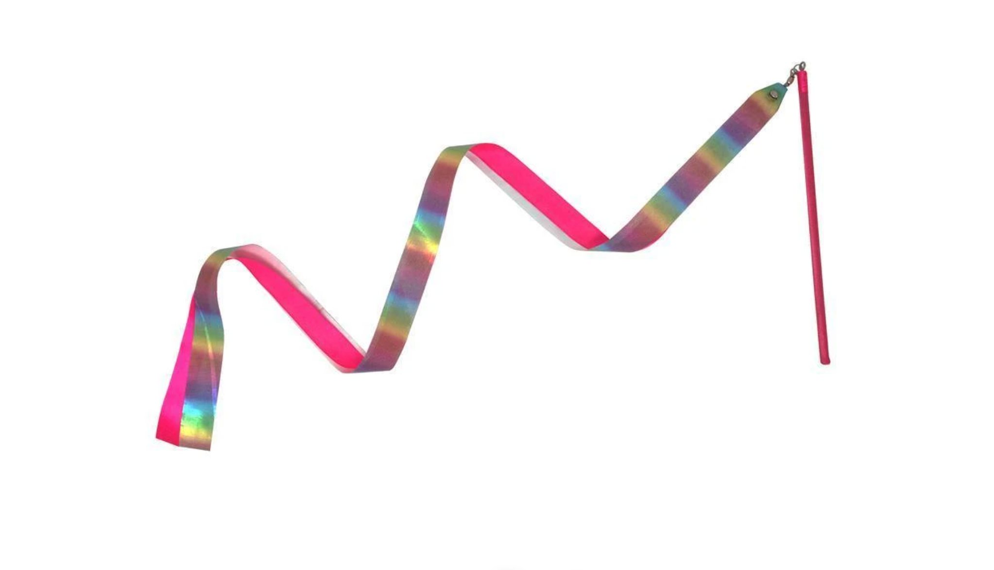 Dance and twirl with Pink Poppy’s pastel rainbow sparkling ribbon wand! With two colorful ribbons and a silver bell that rings as you play! Satin ribbon with colorful gradient and holographic laser print. Great for dance practice or for just for fun. 2 x Ribbons. Jingle bell. Swivel joint for easy flow. For ages 3+ years